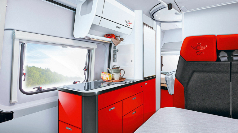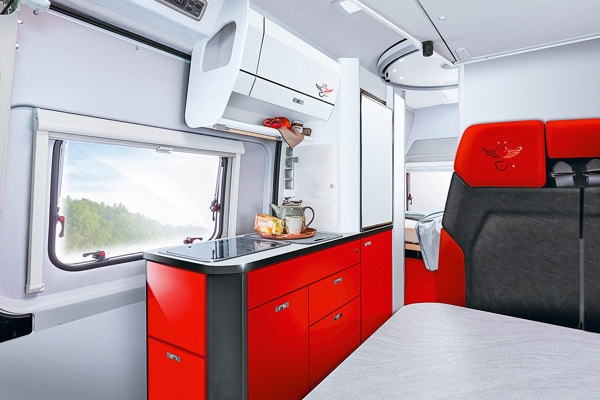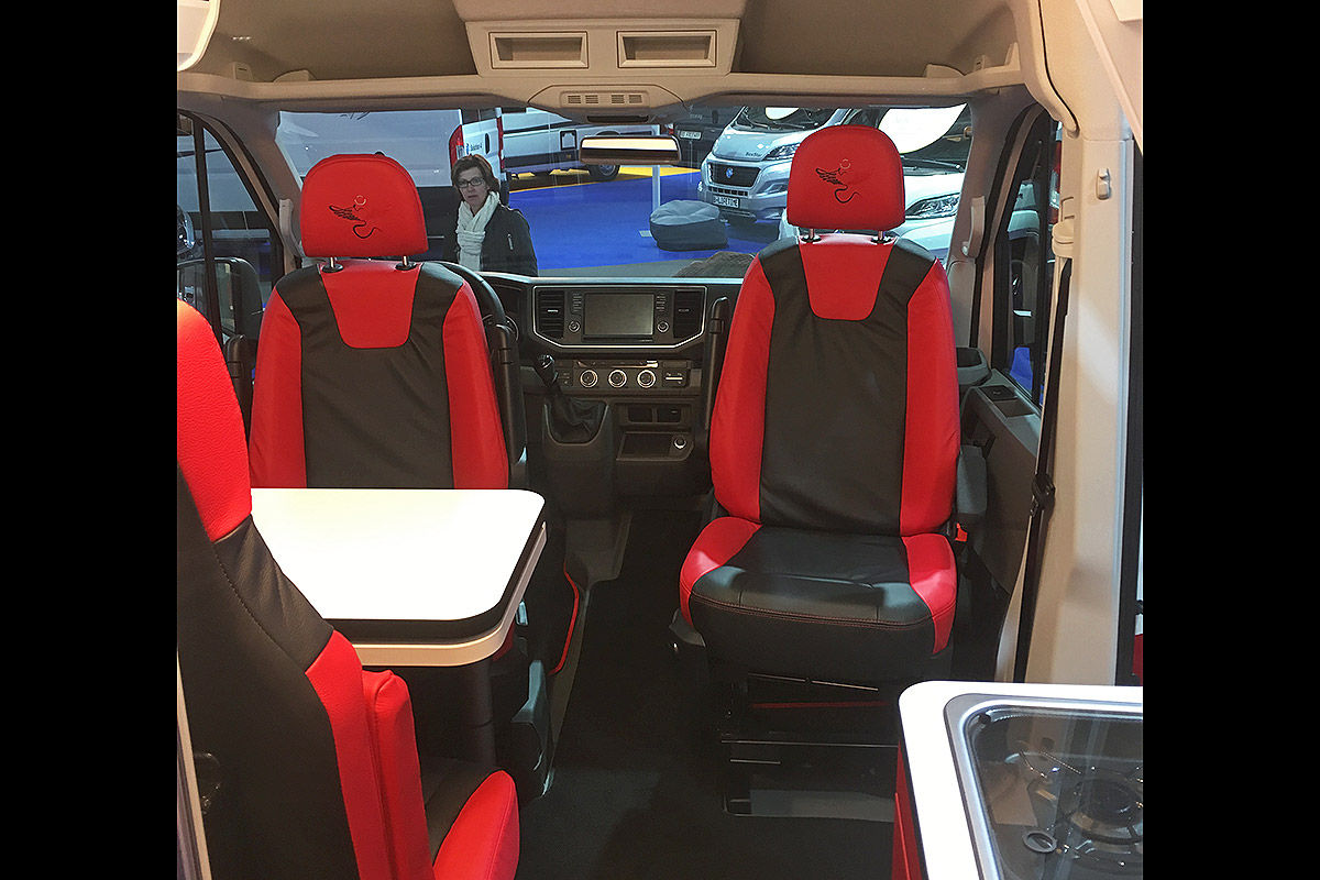 Зовні новий Vokswagen Crafter від ательє Knaus відрізняє ефектне, біло-червоне забарвлення, виконане у дусі комфортабельних побратимів Volkswagen T6 California. Усередині є двомісне ліжко шириною 1,44 м і довжиною 1,85 м. У кухонному блоці встановлено газову плиту на дві конфорки, рукомийник і 90-літровий холодильник. За розкладним столиком можна розміститися на чотирьох кріслах, два з яких повертаються на 180 градусів. Важливо, що встановлено повноцінну душову кабіну і біотуалет.