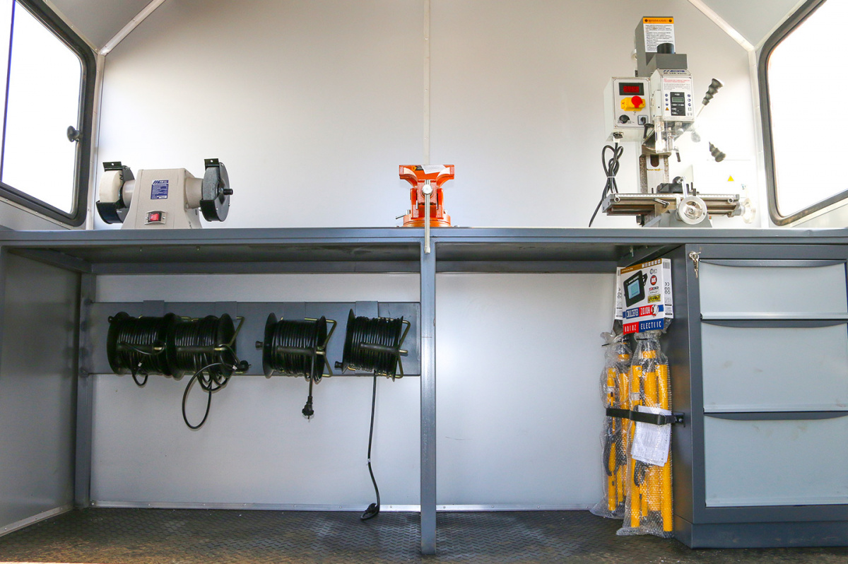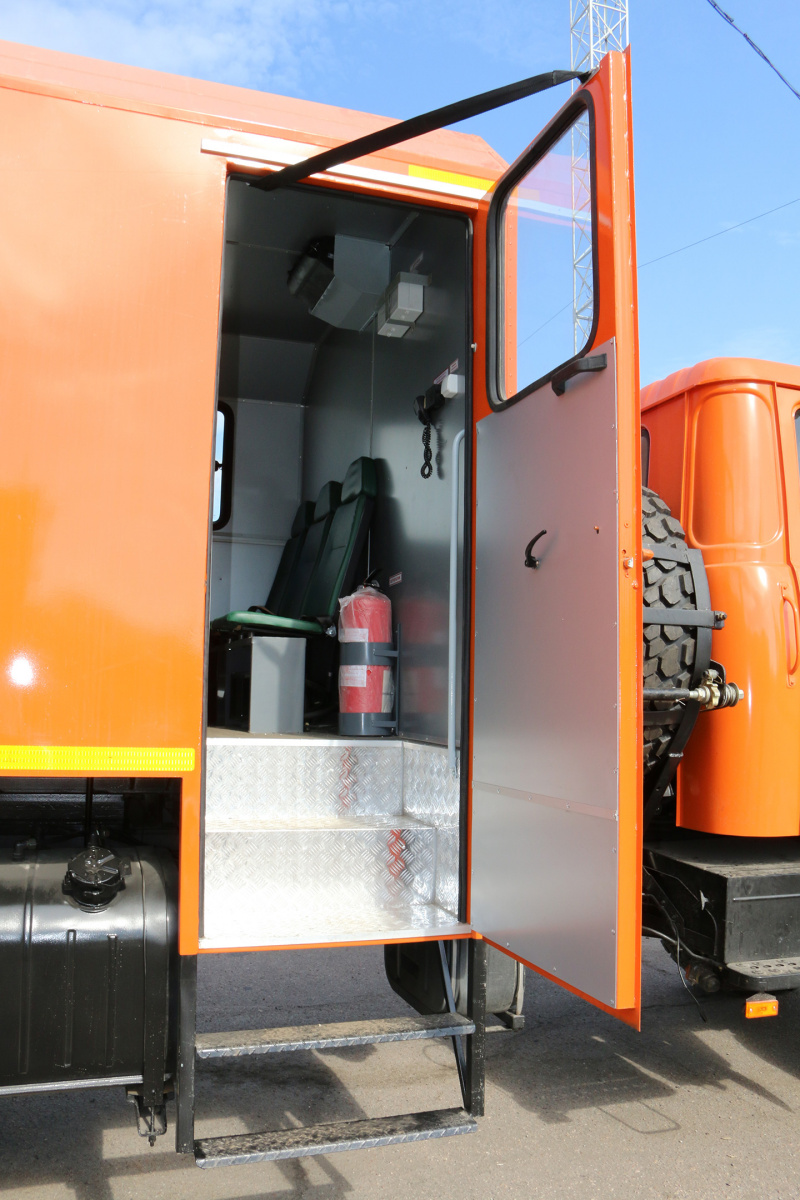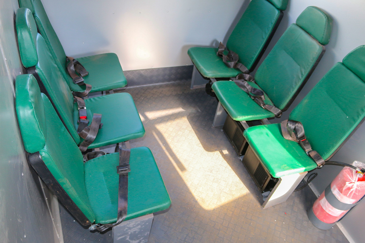 Пассажирский энергетический и слесарный отсеки полностью укомплектованы оборудованием и инструментом, необходимым для проведения ремонта автомобильной техники в полевых условиях. Из комплектации мастерских видно, что руководство ГОКов заботится не только об эффективности труда, но и комфорте своих рабочих.