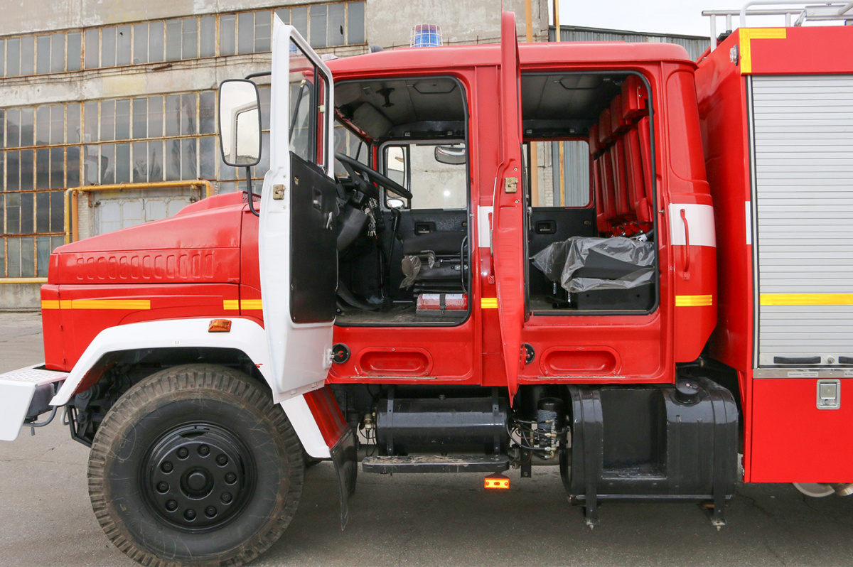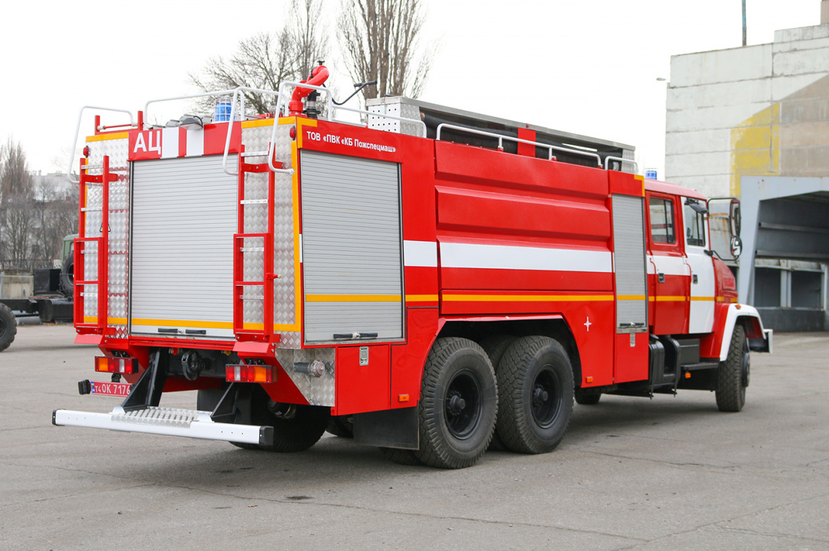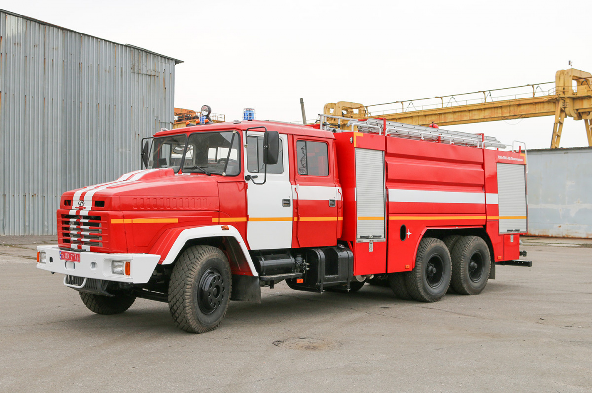 Спецоборудование «КБ «ПОЖСПЕЦМАШ» смонтировано на базе КрАЗ-65053 (6х4), которое имеет сдвоенную четырехдверную семиместную кабину. Комплектация шасси – стандартная, двигатель 300-сильный Евро 5, тормозная система – с АВС.