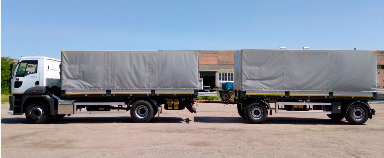 Завод спецтехніки «Техкомплект» днями виконав чергове замовлення для одного із клієнтів на Сумщині. Це автопоїзд на базі Ford Trucks 1833DC та причепа власного виробництва ТК-БП-18. Шасі вантажівки та причепа укомплектовані бортовими тентованими платформами, також побудованими силами підприємства. На тягачі встановлений кузов довжиною 7000 мм, шириною 2500 мм та висотою алюмінієвих бортів 600 мм. Ford Trucks 1833DC має 9,0-літровий турбодизель потужністю 330 к. с., який працює у парі з 9-ступеневою КП Eaton.