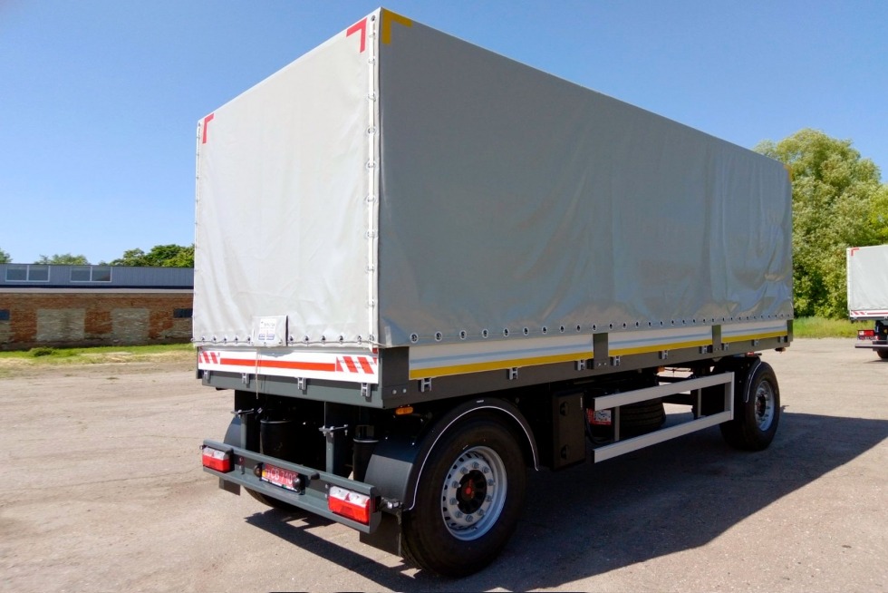 Причіп має власну масу всього 4900 кг та розрахований на повну масу до 18 000 кг. Тут застосовується рама із високоміцної сталі Strenx 700 товщиною 4 мм. Причіп обладнано 9-тонними осями SAF, гальмівною системою Wabco з EBS/ABS. Обидва кузови оснащені легкознімним тентовим каркасом. І тягач, і причіп мають бічний протипідкатний захист у відповідності до норм ЄСЕ.
