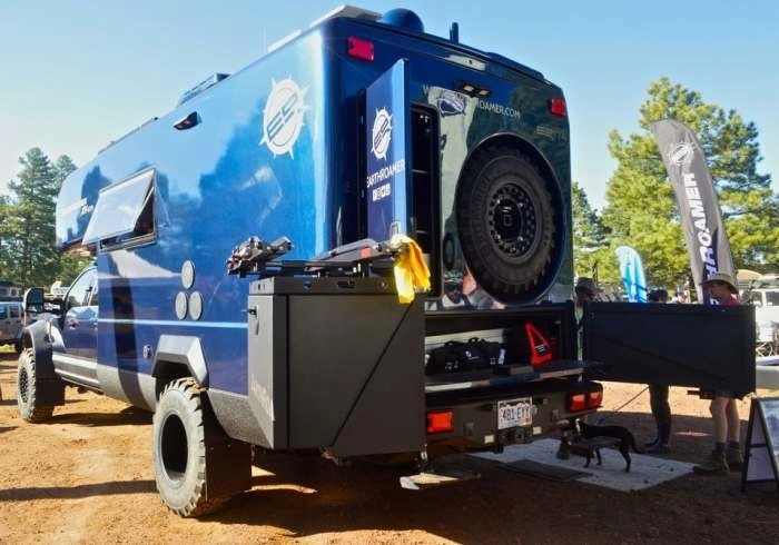 Специально для любителей заехать на кемпере в дебри, чуть ли не в места где не ступала нога человека, поможет караван марки EarthRoamer. Ведь автокемперы данного бренда строят на специально подготовленных для off-road большегрузных пикапах Ford F-серии, точнее модели F550.