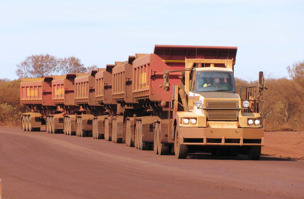 Как минимум два прицепа из шести оснащены такими же двигателями и автоматическими коробками передач, что и сам автомобиль. Супергиганты перевозят более 500 т железной руды за рейс по маршруту длиной 52 км вне дорог общего пользования – от месторождения к погрузочному терминалу.
