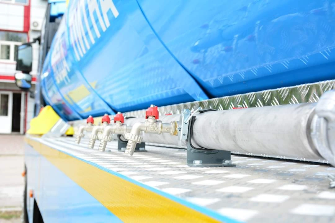 Автоцистерна оснащена одноступенчатым насосом продуктивностью 400 л/мин, а также системой раздачи воды типа «гребенка» - на 8 кранов.