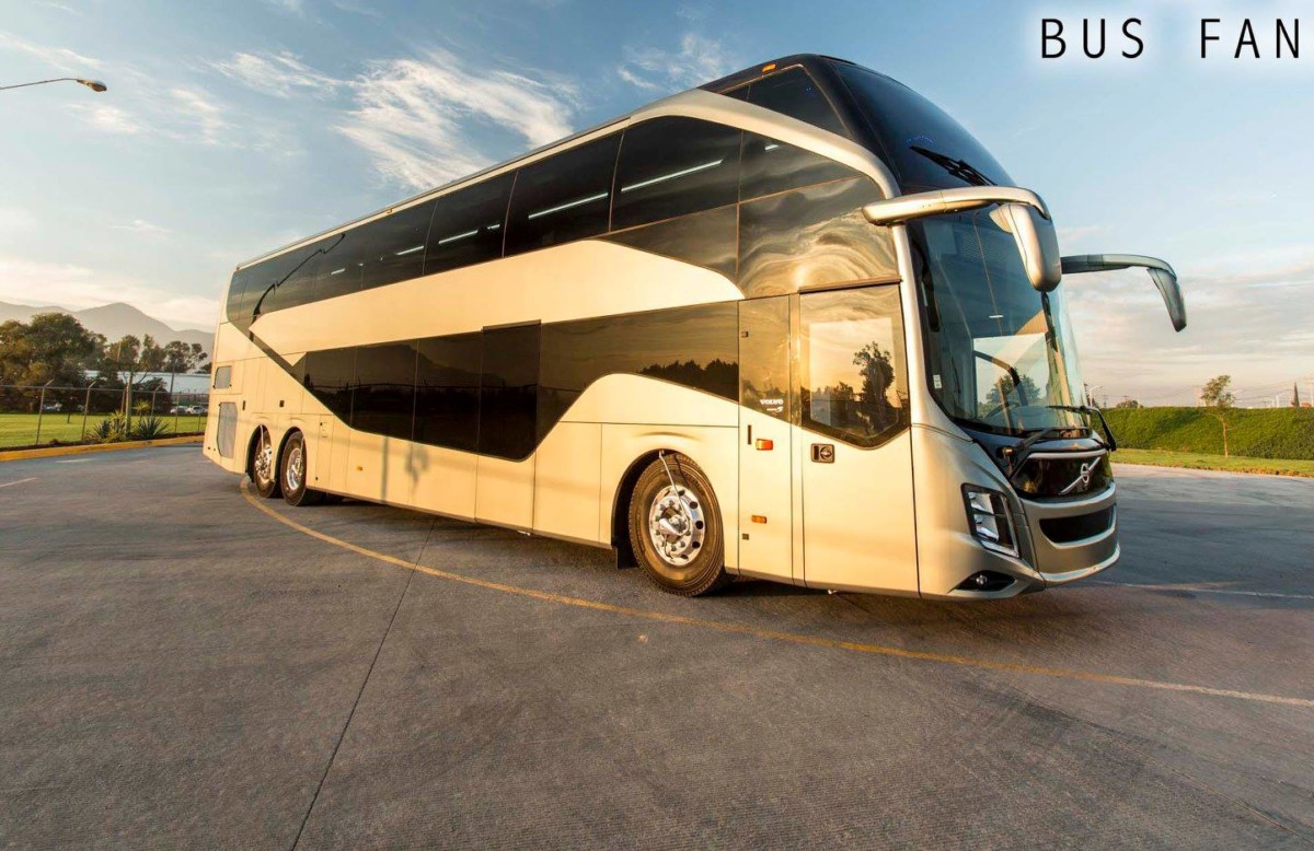 Компания Volvo Buses Mexico к своему 20-летнему юбилею подготовила отличный подарок – роскошный двухэтажный автобус Volvo 9800 DD. Машина поражает своим угловатым дизайном – чего только стоит линия боковых окон. Автобус перевозит на 40% больше пассажиров, чем одноэтажная модель – до 63 человек.