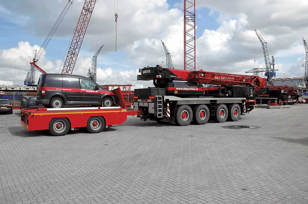 Голландская компания Nooteboom, специализирующаяся на производстве тяжелых многоосных прицепов и полуприцепов, изготовила необычный трейлер. Он предназначен для работы совместно с телескопическим автокраном и перевозит 15-тонный контргруз (такой балласт применяют в работе многоосные краны грузоподъемностью 80–160 т). Особенность новинки в том, что на прицеп, кроме упомянутого контргруза, можно поместить еще и автомобиль, который заезжает по приставным алюминиевым трапам самостоятельно, без применения лебедки. Таким образом, при использовании на удаленном строительном участке не нужно гонять тяжелый автокран за доставкой на объект небольших грузов или рабочих. Иными словами, экономится время и уменьшаются расходы. Габариты прицепа Д/Ш/В: 7,0х2,75х1,2 м. Размер погрузочной площадки для контргруза – 4,5х1,7 м, высота опорной палубы – 82 см. Низкий центр тяжести трейлера обеспечивает хорошую устойчивость на дороге. Снаряженная масса составляет 4 т, а грузоподъемность – 17 т.