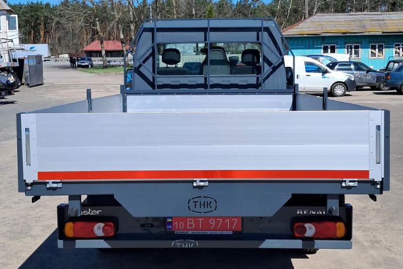При цьому сама надбудова є досить легкою. Борти заввишки 400 мм, відкидні з боків і ззаду, виготовлені з напірного алюмінієвого профілю завтовшки 25 мм. Підлога виконана з рифленої сталі. За кабіною встановлений трубчастий каркас, що захищає у разі зсуву вантажу. А з боків під платформою змонтовано протипідкатні бруси.