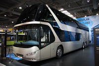 Внешность машины решена в духе новейшего «остроугольного» стиля Neoplan – под названием «Sharp Cut Design». 14-метровый автобус имеет 82-местный высокомфортабельный салон. К услугам пассажиров – более удобные кресла, система климат-контроля с увеличенной на 40% мощностью, а также новейшая система мультимедиа с несколькими большими экранами: как на первом, так и на втором этаже
