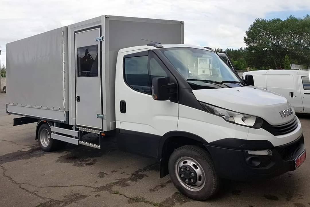 Взяли шасі IVECO Daily зі звичайною, тримісною кабіною і позаду неї встановили невелику надбудову. В останній можуть розміститися до чотирьох чоловік, а посадку-висадку полегшують широкі двері зі зручними підніжкою і поручнем. Бортову платформу, щоправда, довелося вкоротити, проте в цьому випадку це не критично. В результаті вийшов досить функціональний автомобіль для ремонтних бригад.