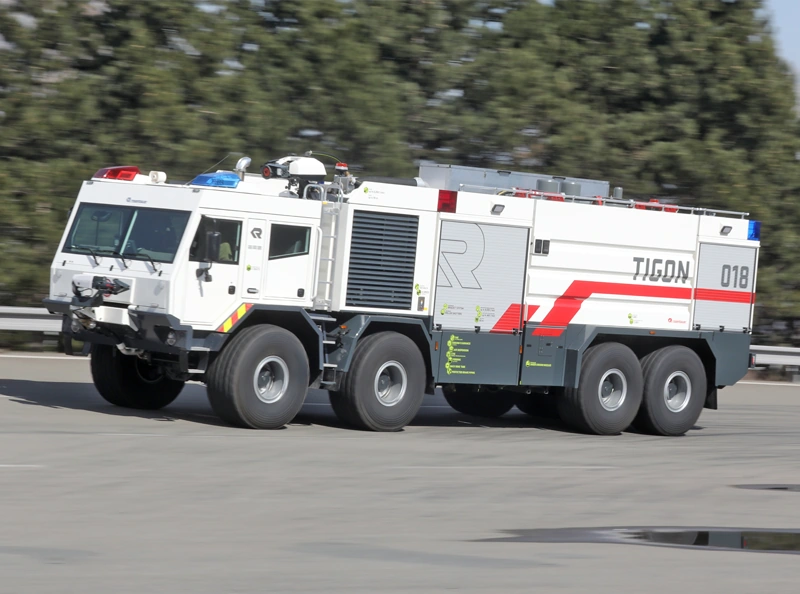 Новый пожарный автомобиль Tatra Tigon разработан в партнерстве с австрийской компанией Rosenbaurer – одним из трех крупнейших производителей такой технике в мире. Tatra Tigon (с англ. «тигон» - гибрид тигра-самца и льва-самки) построена на полноприводном шасси Tatra Force (8x8). Использование фирменной независимой вневмоподвески обеспечивает машине не только высокую проходимость на местности, но и отличную устойчивость на высокой скорости.