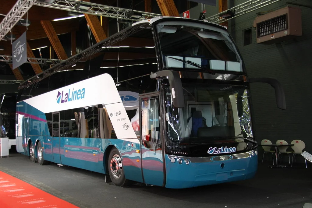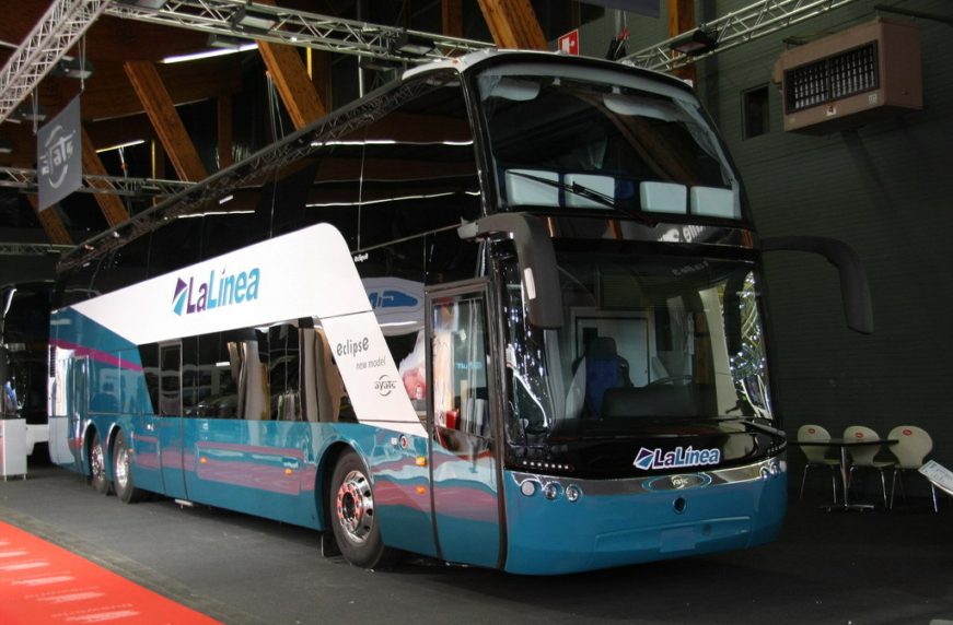 Компания Ayats cпециализируется на выпуске автобусов уже свыше 100 лет, начиная с 1905 года. На автосалоне Busworld Kortrijk 2013 дебютировала новая флагманская модель компании – двухэтажный туристический лайнер Eclipse. На стенде посетители могли увидеть сразу две машины. Первая из них, бело-зеленого цвета, имела длину 14,6 м, ширину 2,6 м и высоту 4,1 м. Автобус представлен в интересном, спальном исполнении. Все его 50 пассажиров могут не только сидеть в комфортабельных креслах, но и лежать на удобных спальных полках, расположенных в нишах-купе. Отличную звуко- и теплоизоляцию обеспечивает двойное остекление салона.