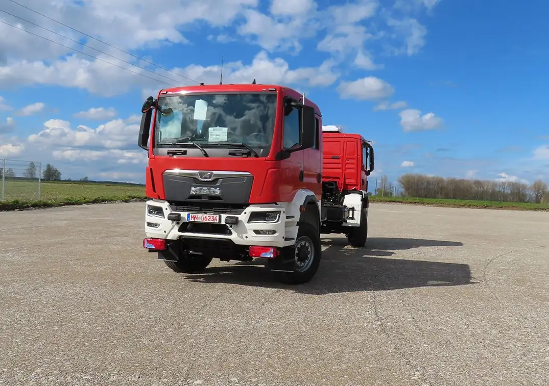 Німецька компанія Toni Maurer GmbH & KG переобладнала шасі під незвичайний пожежний автомобіль, призначений для тунелів. Тут встановили одразу дві кабіни керування – спереду та ззаду, для реверсивного руху, адже у тунелі розвернутися вантажівці буде проблематично.