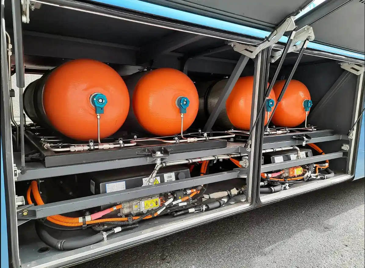 Водень зберігається у чотирьох балонах під тиском 350 бар. Для системи охолодження використовуються чотири батареї LiFeO від СATL. Крім того, встановлені й літій-іонні акумулятори ємністю 423 кВт.год. Заявлений запас ходу складає 600 км.