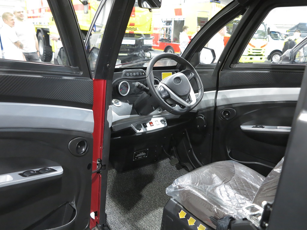 На стенді привертають увагу дві машини марки Runhorse із ефектним, можна сказати футуристичним дизайном кабіни. Перша з них – це модель J2P. Вона оснащена вантажним відсіком об’ємом 1,59 м куб. При цьому габарити авто дуже скромні: довжина – 3600 мм, ширина – 1345 мм та висота – 1770 мм. За власної ваги 405 кг корисне навантаження становить 500 кг.