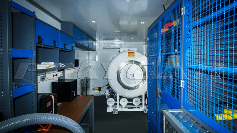 Другий модуль – технічний, розміщується у кузовній надбудові на причепі. У ньому встановлено барокамера для проведення декомпресії, а також лікувальної рекомпресії водолазів. Також за допомогою цього обладнання можна здійснювати навчально-тренувальні спуски під воду.
