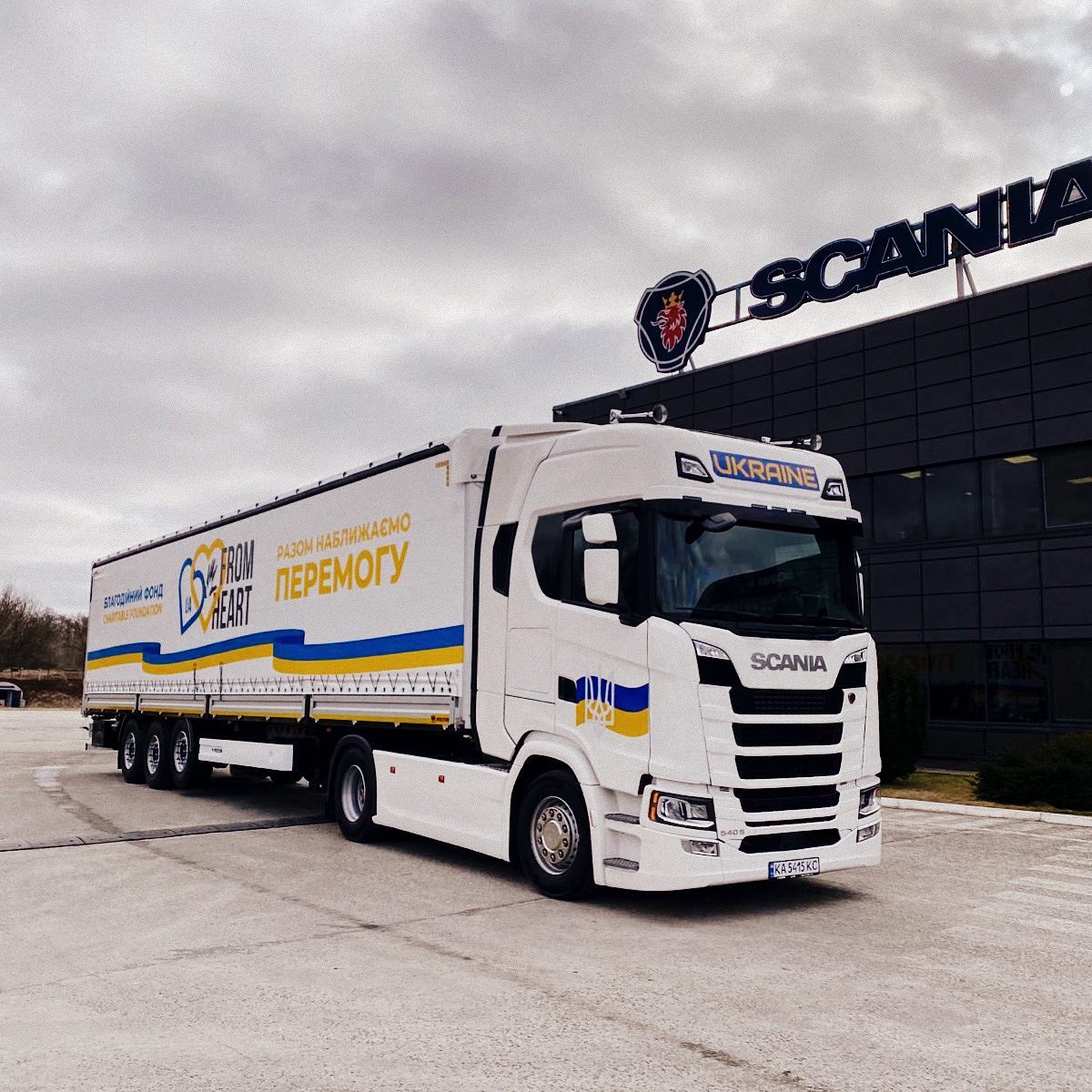 Компанія «Сканія Україна» поставила днями найпатріотичніший автопоїзд у нашій країні. Він складається з сідлового тягача Scania 540 S та тентованого напівпричепа марки Wielton. Увагу одразу привертає зовнішнє забарвлення, виконане у кольорах національного прапора, а також великі написи на напівпричепі: «Разом наближаємо Перемогу». Виявляється, покупцем цієї зчіпки виступив «Благодійний фонд «Фром Харт Юкрейн». Він утворився ще в 2014 році, а після початку повномасштабної війни рф проти України всі свої сили направив на допомогу ЗСУ, шпиталям, ДСНС та Нацполіції.