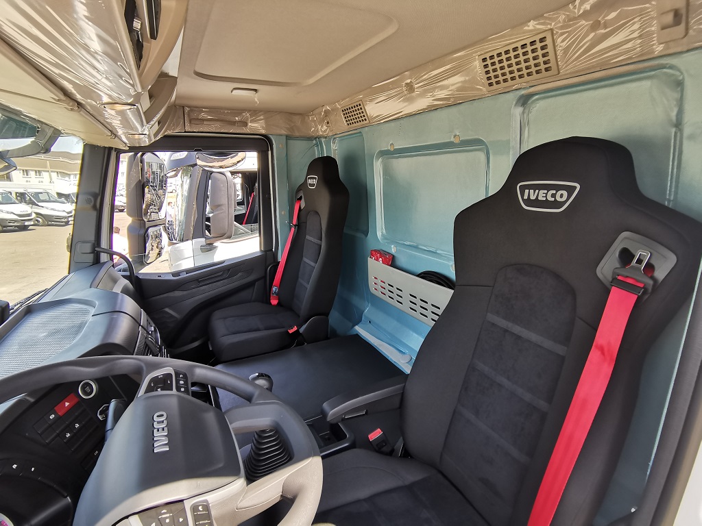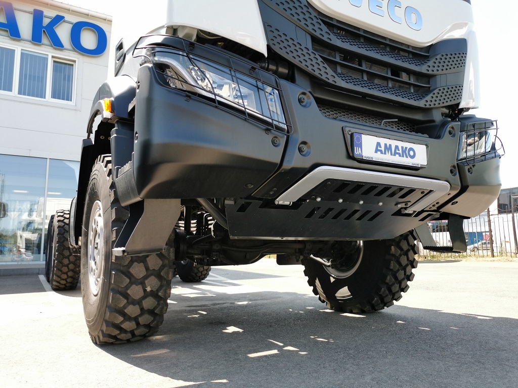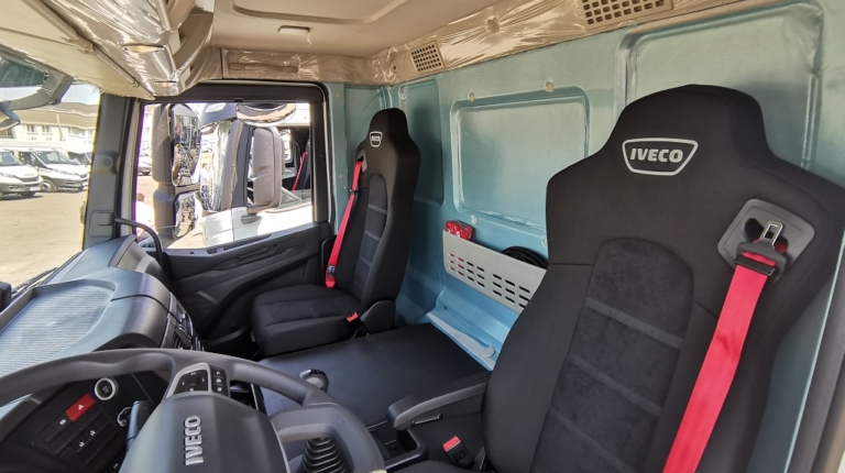 IVECO T-Way отримав повністю нову кабіну – з дизайном у стилі магістральних тягачів S-Way. Тут застосовується трисекційний, сталевий бампер із загратованими фарами. Для нашого ринку обов’язково встановлюється сталевий захист двигуна знизу.