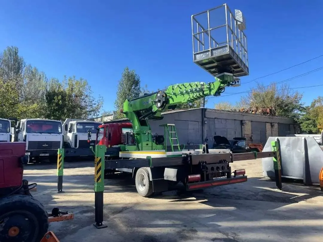 Завод спецтехніки «Техкомплект» днями виконав цікаве замовлення. На шасі китайського виробництва JAC N120 від компанії «Агсолко Україна» був встановлений південнокорейський автогідропідйомник Skyman DS300. Машина виконана для комунального підприємства Солом'янського району міста Києва.