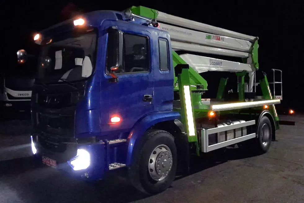 Вітчизняний ринок автовишок продовжує зростати. Днями Завод спецтехніки «Техкомплект» зібрав перший в Україні автогідропідйомник Comet з робочою висотою 31 м. Він виготовлений на шасі JAC N200 та поставлений дилеру – харківській компанії «Тех-Транс».