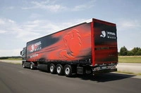 ЧАО ТЭК «Западукртранс» - один из лидеров транспортных услуг Украины, недавно пополнил свой автопарк 40 новыми тентованными полуприцепами Koegel Cargo. Для увеличения полезной площади кузова компания Koegel дополнила конструкцию четырьмя парами откидных алюминиевых бортов высотой 700 мм, оснащенными скобами под тент для таможенной пломбы. Передняя стенка кузова, в серийном оснащении изготовленная из алюминия, по заказу клиента была заменена на стенку высотой 2000 мм из профилированного стального листа с объемными угловыми стойками.