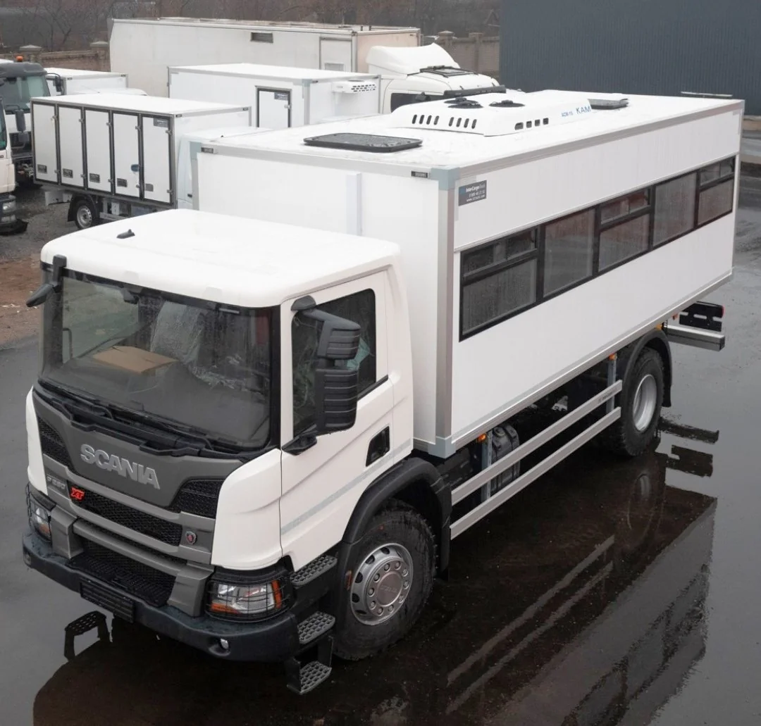Автомобілі для перевезення вахтових бригад на українському ринку можна зустріти на базі різних вантажівок. Нещодавно до них приєдналася й Scania. На шасі P280 (4х2) відоме вітчизняне підприємство "Інтеркарготрак" виготовило вахтовий автобус на 26 місць.