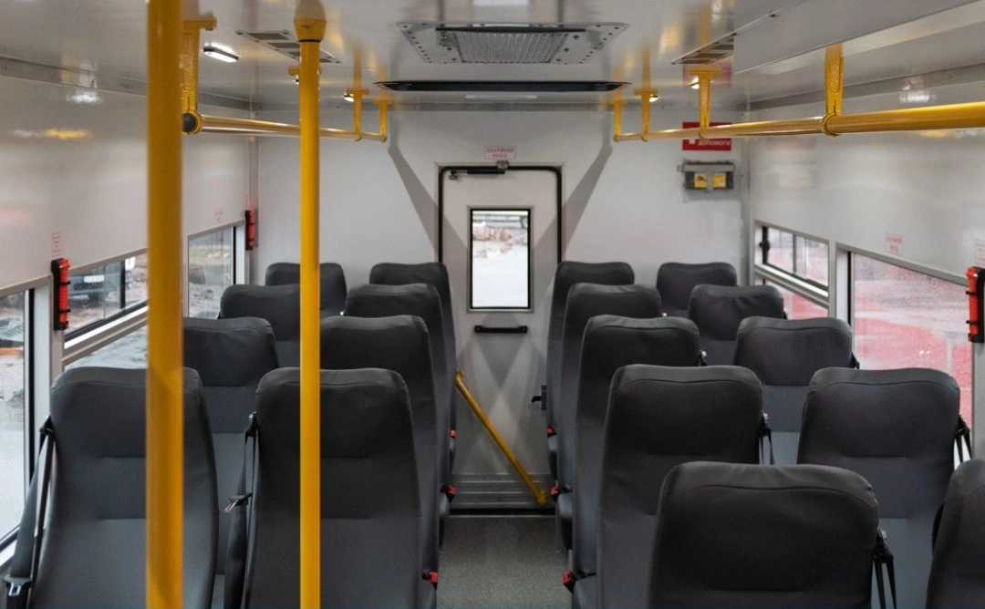 Усередині встановлені комфортабельні сидіння з триточковими ременями безпеки, кондиціонер, обігрівач та переговорний пристрій із кабіною водія. Посадку-висадку через бічні двері полегшують зручні підніжки та поручні. Функцію аварійного виходу виконують двері у кормі, а також частина вікон, біля яких закріплені спеціальні молоточки.