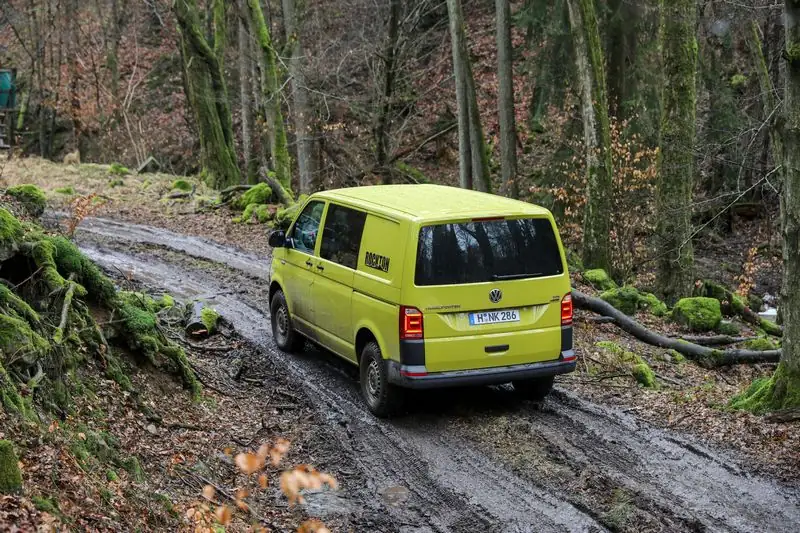 Еще одним интересным автомобилем стал фургон Transporter Rockton. Он отличается от серийного не только увеличенным на 30 мм клиренсом, но также стальной защитой двигателя, усиленной трансмиссией Torque&Trail, а также наличием шнорхеля (высоко расположенного воздухозаборника) для защиты двигателя от пыли.