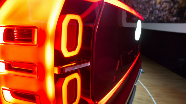 Концептуальный пикап Atlas Cross Sport отличается эффектным оформление носовой части и кормы – с обилием светодиодов. Профиль довольно динамичный, и в этом немалая заслуга мастерски спрятанных в задние стойки ручек второй пары дверей.