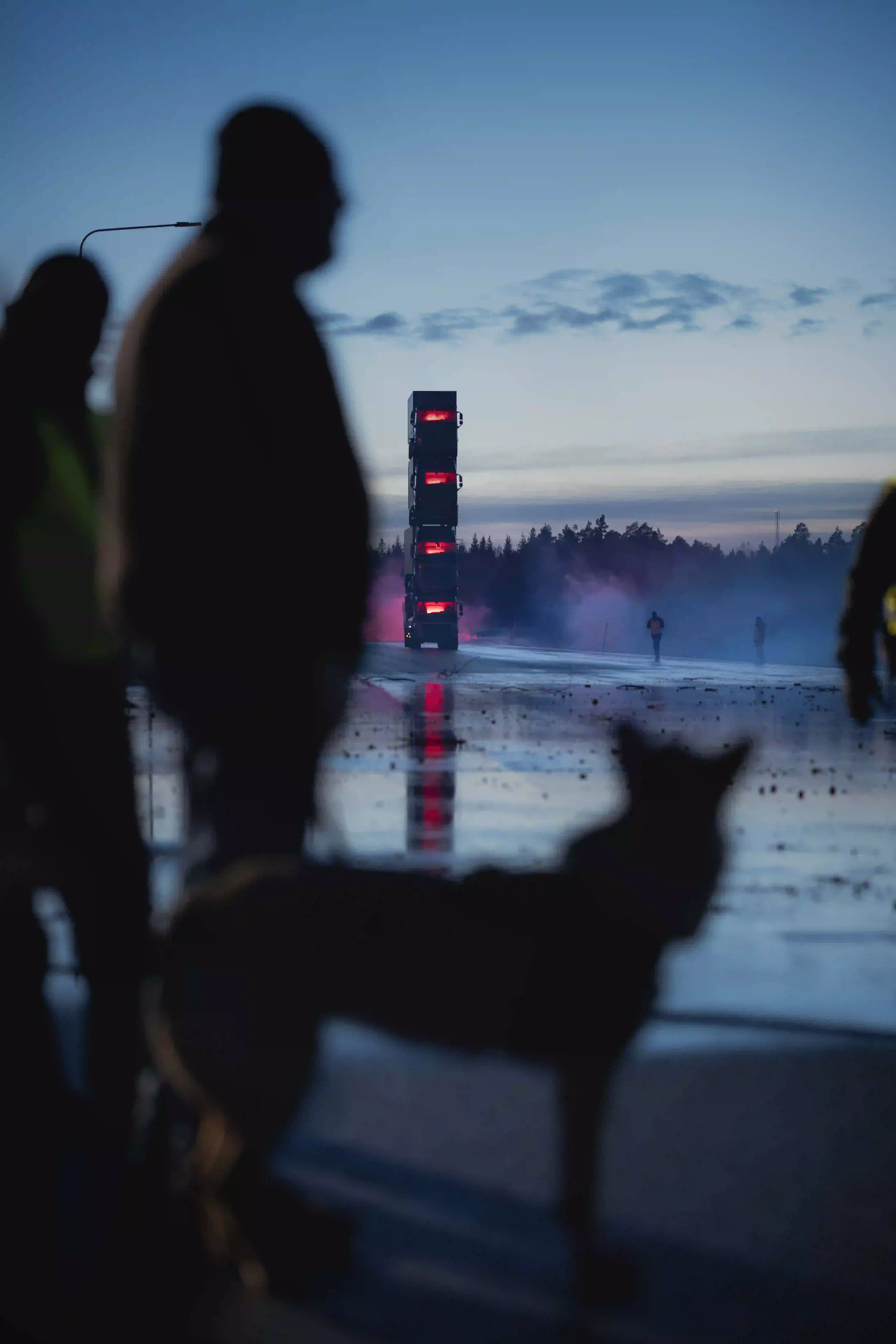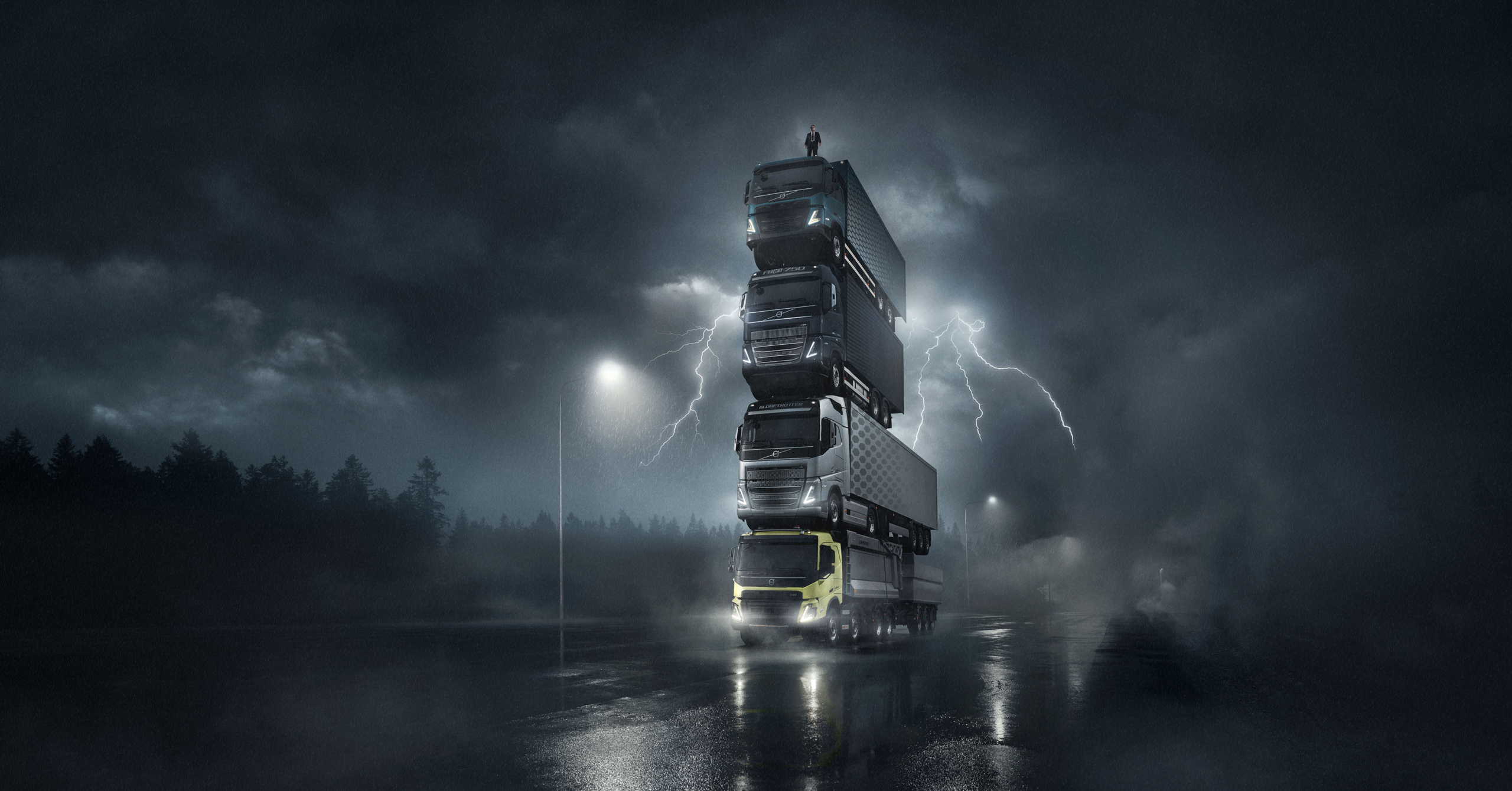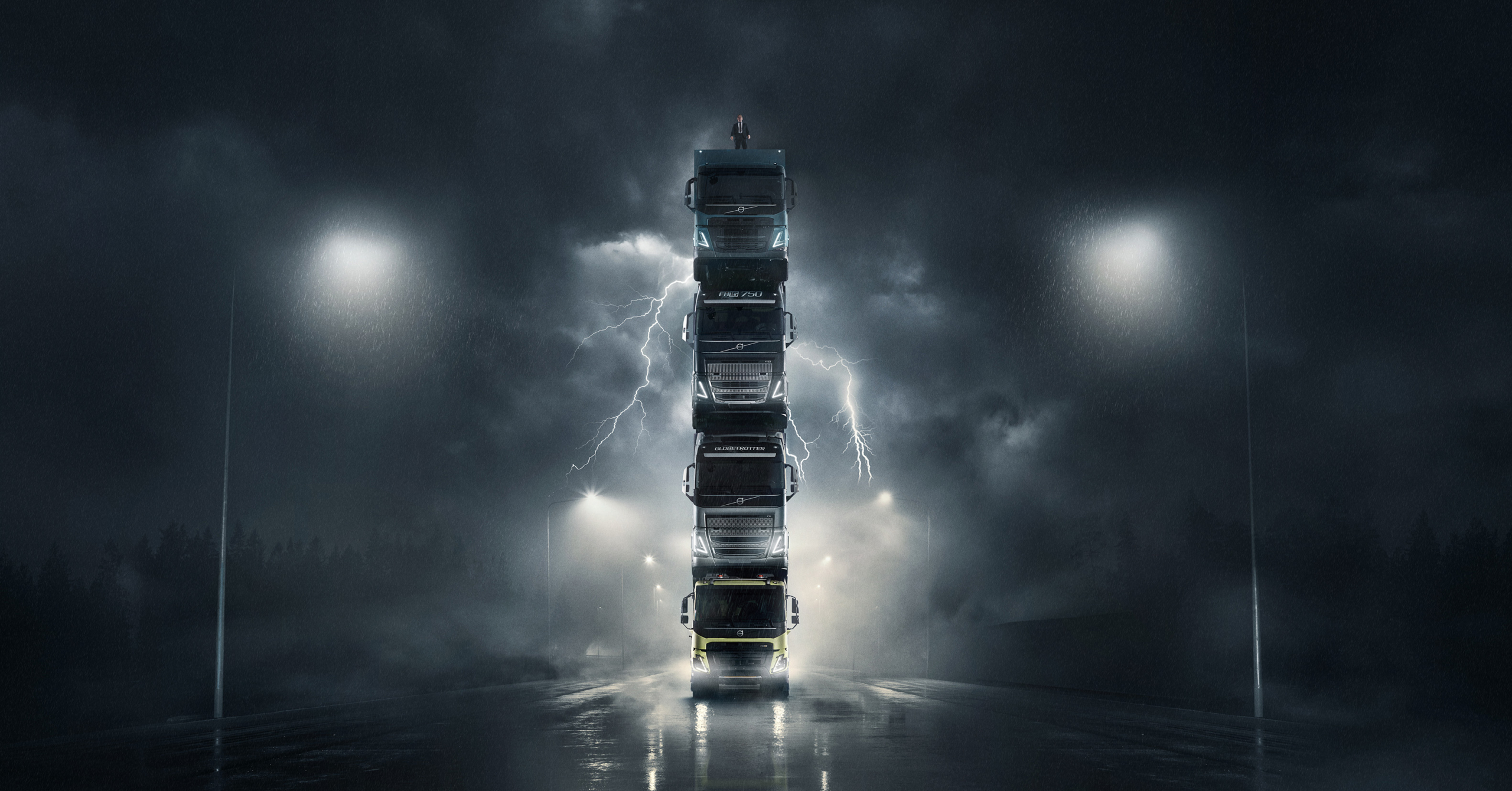 Щоб продемонструвати потужність та міцність своїх чотирьох нових вантажівок, Volvo побудувала колосальну 15-метрову 58-тонну вежу з вантажівок, установивши чотири нові вантажівки одна на одну. Крім цього, на вершині розмістився президент Роджер Альм.
