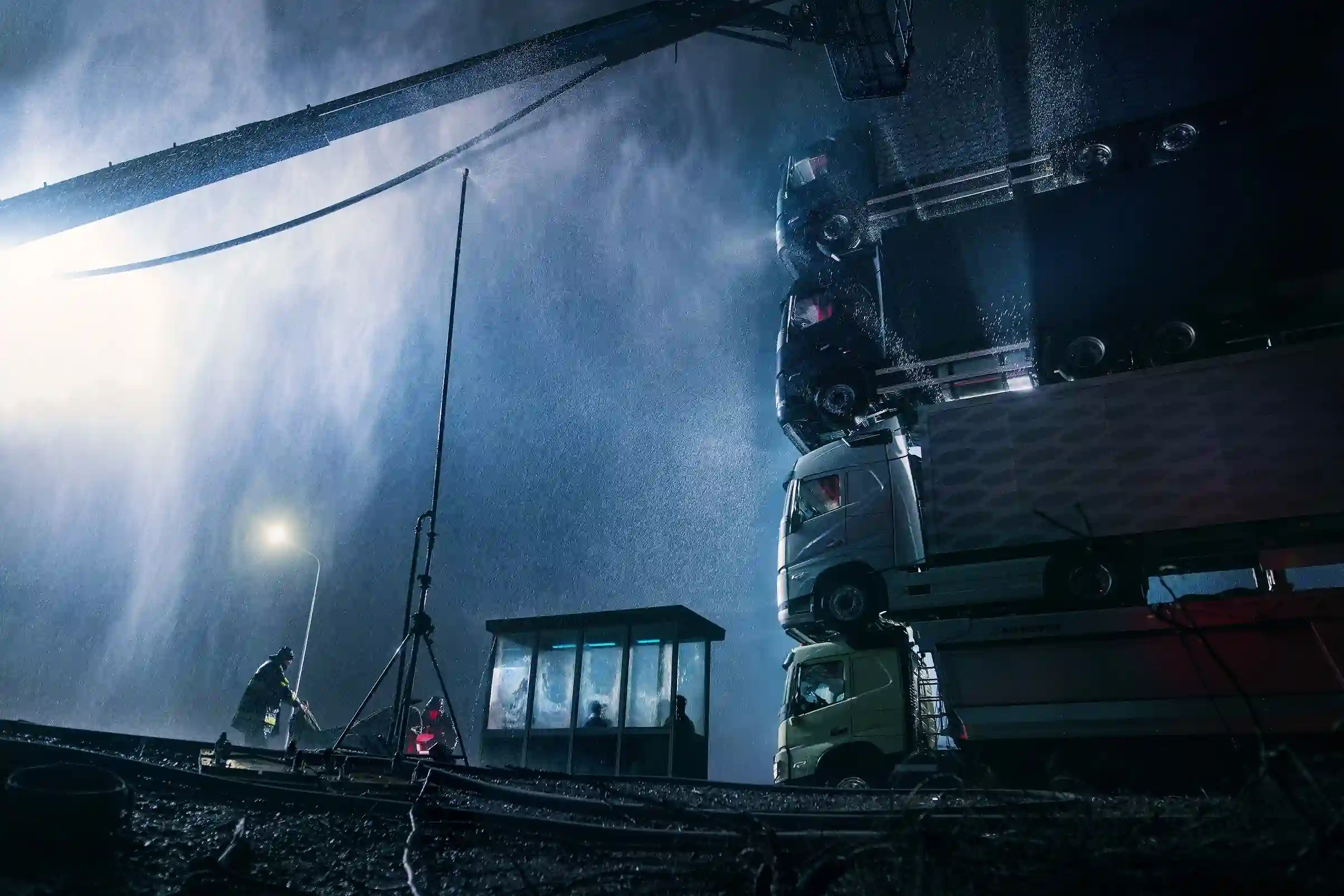 Відеоролик був знятий наприкінці 2019 року на випробувальному полігоні біля шведського міста Ґетеборг, батьківщини Volvo. Як вежа з вантажівок, так і більшість візуальних ефектів справжні, включаючи дим і освітлення – про це можна дізнатися з ролику про процес зйомок.