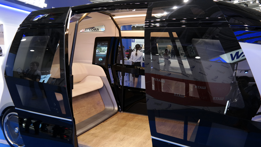 Маршрутку майбутнього розробили в НАМІ в партнерстві з “КАМАЗом” і Яндексом. “Шатл” не має місця водія – вже зараз маршрутка може самостійно рухатися закритими територіями зі швидкістю до 25 км/год.