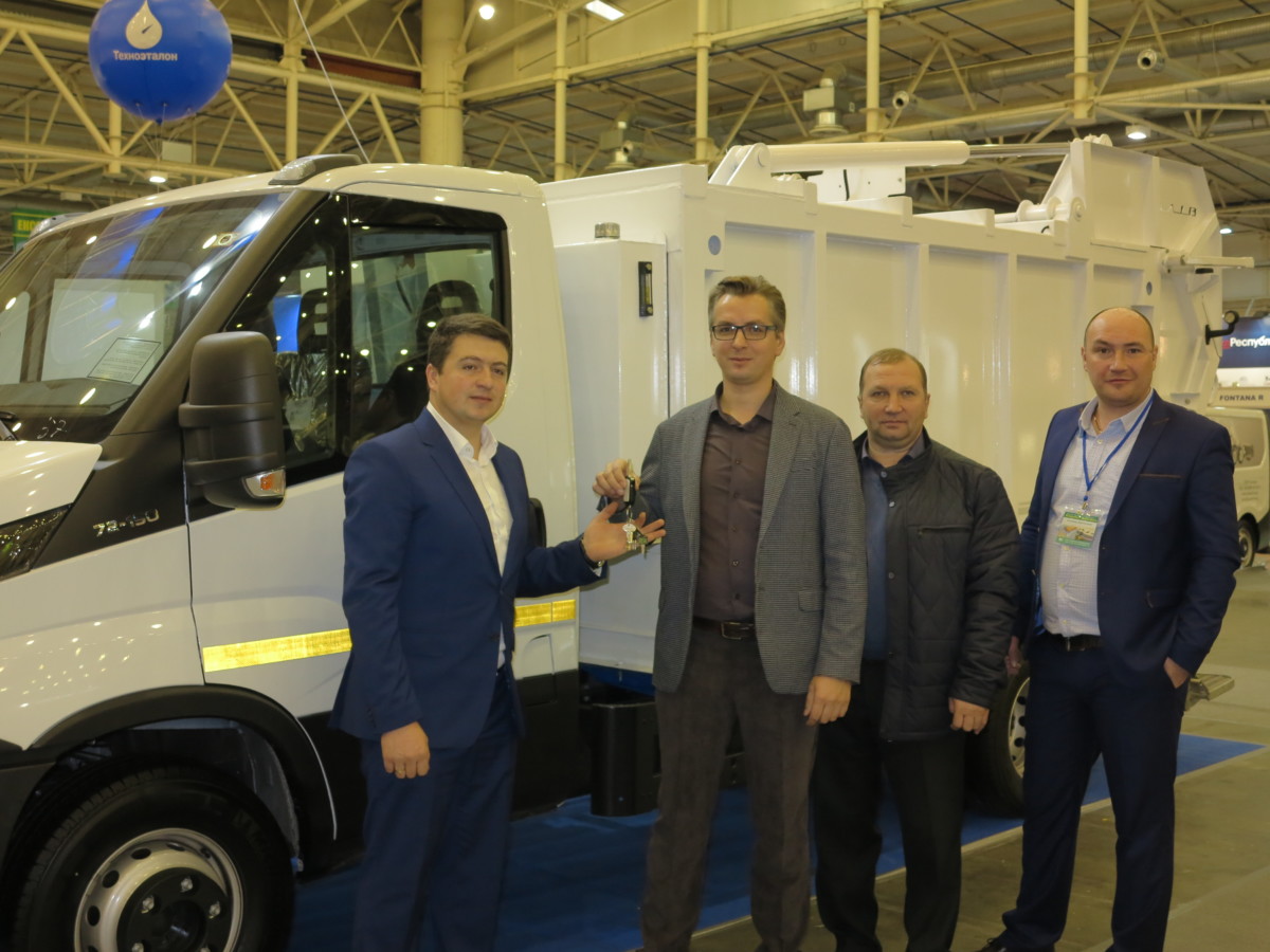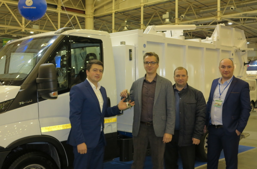 Компактную и высокопроизводительную машину не просто показали на выставке, а и передали покупателю. Ключи от мусоровоза вручили Сергею Кравченко – председателю сельсовета села Подгорцы Обуховского района Киевской области.