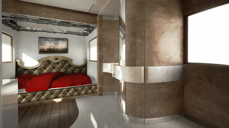 В ролі базового шасі використано вантажівку DAF XF з топовим 510-сильним двигуном. Робоче місце водія, королівська спальня і меблі, що трансформуються за допомогою електроприводу, не перестають дивувати нарівні з зовнішнім виглядом. А ось ціна поза конкуренцією – 2,3 млн євро.