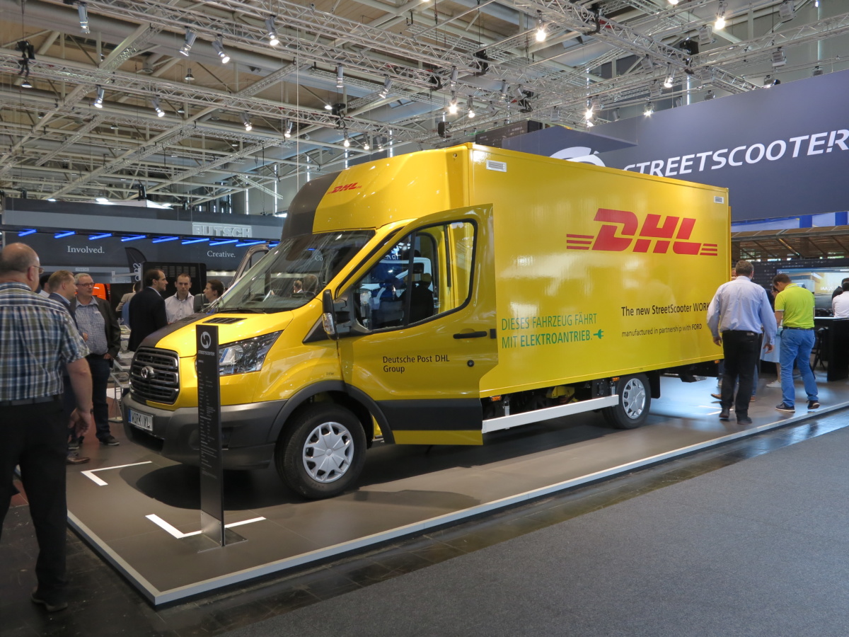 Пока что на электромобили для доставки грузов переходят крупные компании, в том числе государственные. И тому пример – почтовая служба Франции, которая перевела свой автопарк на Renault Kangoo Z.E. А такой известный оператор как DHL начал активную работу с немецким производителем электрогрузовичков SteetScooter. На автосалоне в Ганновере эта компания показала свежайшую разработку – среднеразмерный электрофургон на на базе Ford Transit.