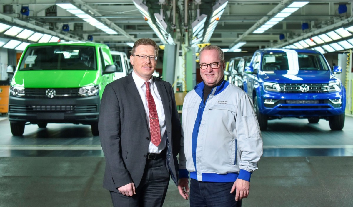 д-р Джозеф Бомерт, член правления Volkswagen Commerciak Vehicles и ответственный за производство и логистику (на фото слева) и Юхим Буцлэфф, директор по производству предприятия Volkswagen в Ганновере.