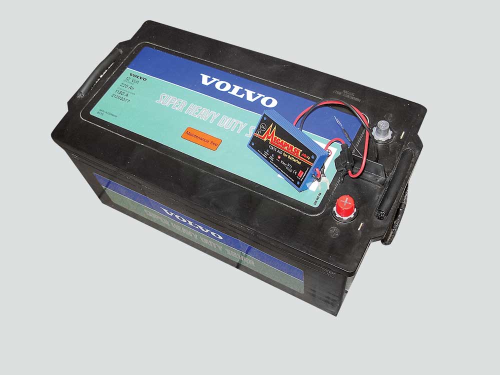 При понижении температуры емкость аккумулятора снижается – соответственно, уменьшается и его способность отдавать ток. Батареи дальнобойных тягачей требуют особого внимания, ибо машины часто простаивают с неработающим двигателем – на таможне, в ожидании погрузки, на ночевках и т. д. – и аккумуляторы при этом не подзаряжаются. Поэтому мы предлагаем клиентам приобрести электронную антисульфатационную систему. Это прибор, который питается от самого аккумулятора. Он препятствует образованию сульфата свинца в батарее и растворяет уже образовавшийся его слой на пластинах. В результате повышается емкость аккумулятора.
