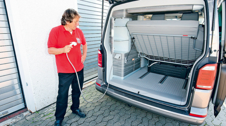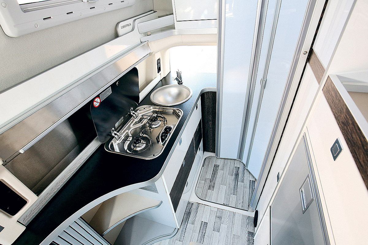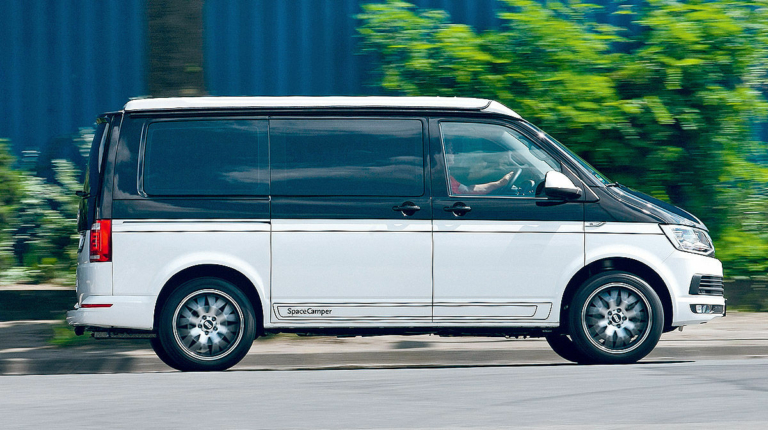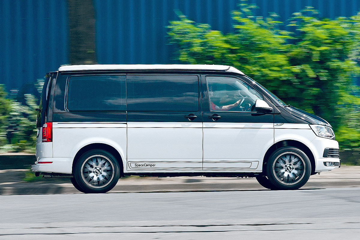 Далі на черзі кемпер німецького виробника RW-Fahrzeugbau. Назва моделі Space Camper відзначає особливе значення корисного простору. Машина складена на базі автомобіля Caravelle T6 і має двоє зсувних дверцят на бортах. Тут є висувний кухонний блок, яким можна користуватися і на вулиці, а також комфортабельна душова кабіна. Передбачено два баки для води 40 л.