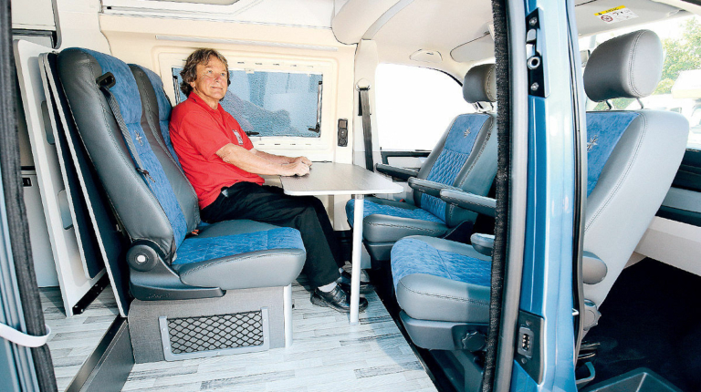 Третій піддослідний Volkswagen T6 – кемпер MultiStyle фірми Reimo. Його складено на машині з подовженою на 40 см колісною базою, а тому місця тут більше, ніж у перерахованих вище моделей. Кухня з газовою плитою, холодильник на 39 л і комфортний біотуалет – за перегородкою з дверима. Крісла трансформуються в двоспальне ліжко. Ціна питання – 55 330 євро.