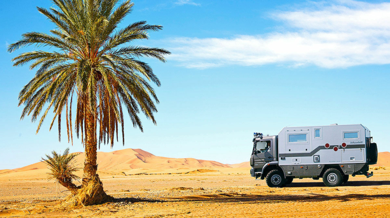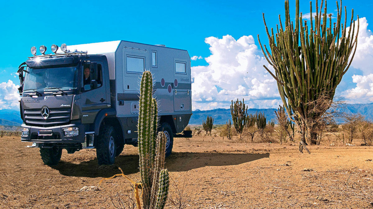 Что же касается внедорожных кемперов Mercedes-Benz, то интересные машины на полноприводных шасси выпускает такой именитый производитель автодомов как Bimobil. Он, например, изготовил жилой дом на базе Unimog для кругосветного путешествия или другой полноприводный кемпер – на шасси Atego 1023 (4х4).