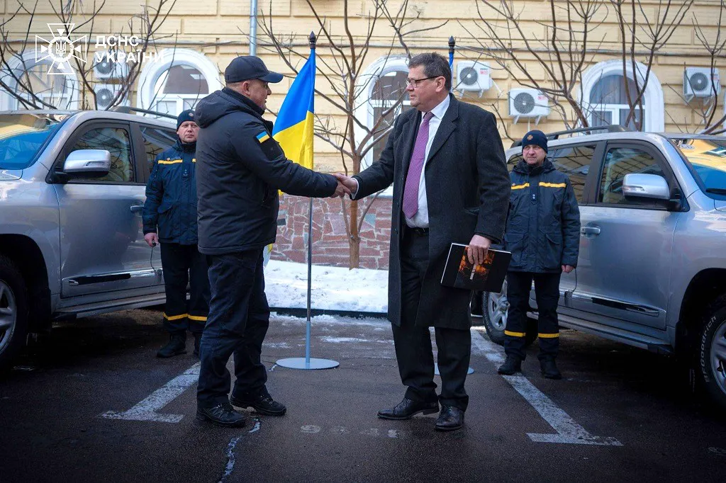 На передачі автомобілів, яка відбулася 13 січня в одному з підрозділів ДСНС Києва, були присутні голова відомства Андрій Данік та Повноважний Посол Великої Британії в Україні Ніл Кромптон.