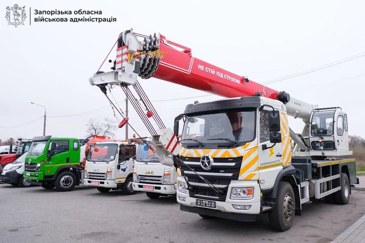 Це 10 машин, серед яких два 18-тонні автокрани та вакуумна машина, виготовлені на шасі Dayun Кременчуцьким заводом комунальної техніки «Альфатекс». Автокрани працюватимуть у КП «Запоріжміськсвітло», а вакуумна машина – у Терноватській громаді. А автопарк КП «Елуаш» поповнився двома сміттєвозами на шасі JAC. Для Василівської громади передані міні-екскаватор Simomach ZG020J та трактор Fugesen 1024.