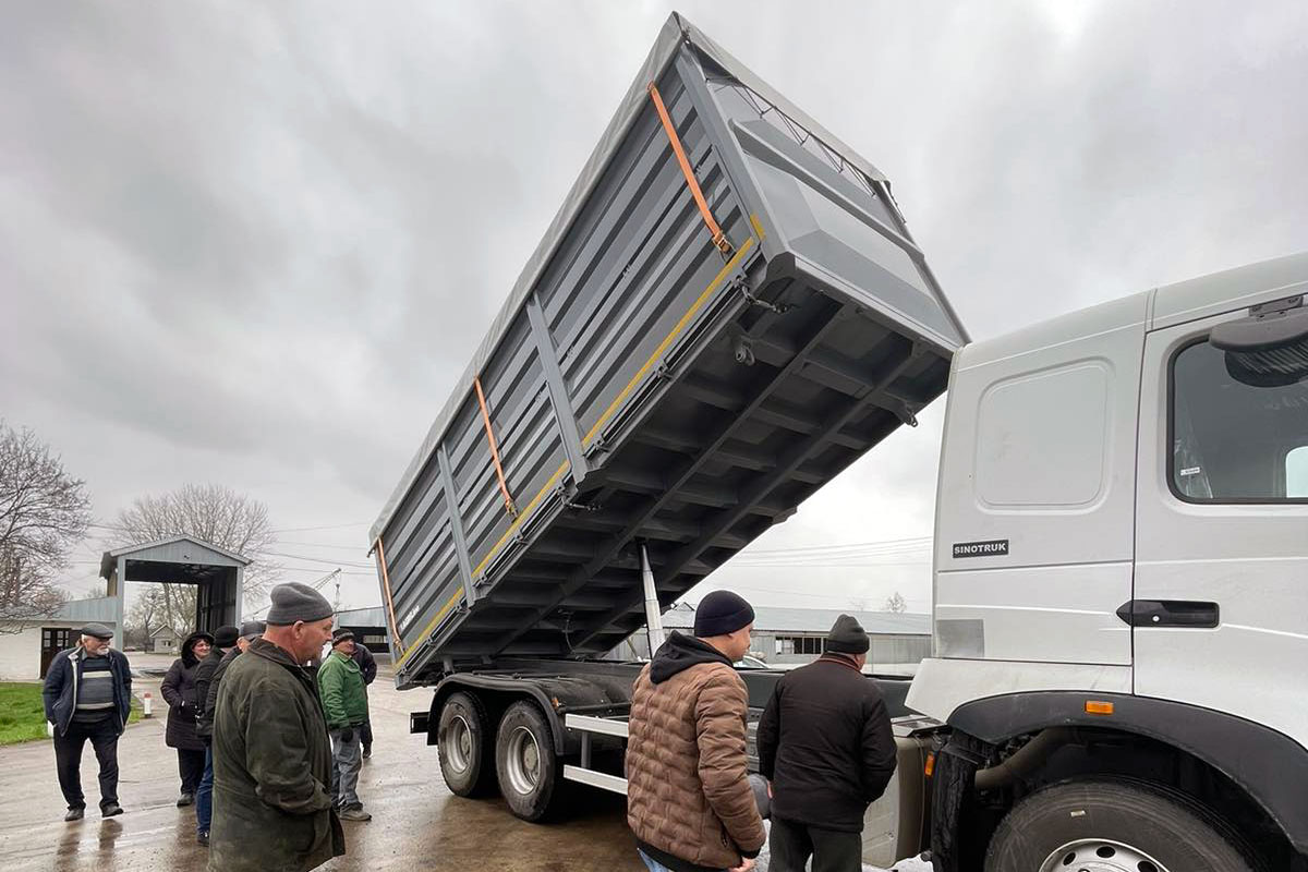 Так, на Київщину, у Переяслав-Хмельницький пішла модель із 30-кубовим кузовом, поставлена дилером – компанією «Техноторг». А на Житомирщину було відвантажено ще більш містку модель, з платформою на 32 м куб. Її поставив інший дилер – Agsolco Ukraine. Кузови обох машин мають двостороннє розвантаження та виготовлені із надміцної сталі СТ3/Strenx 700.