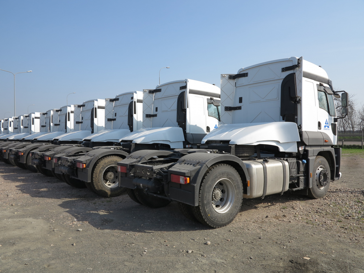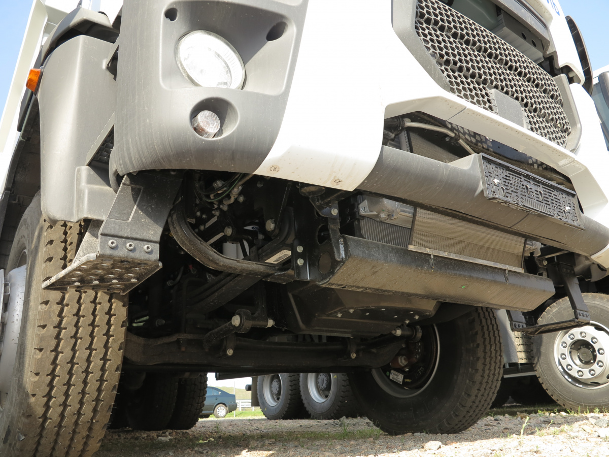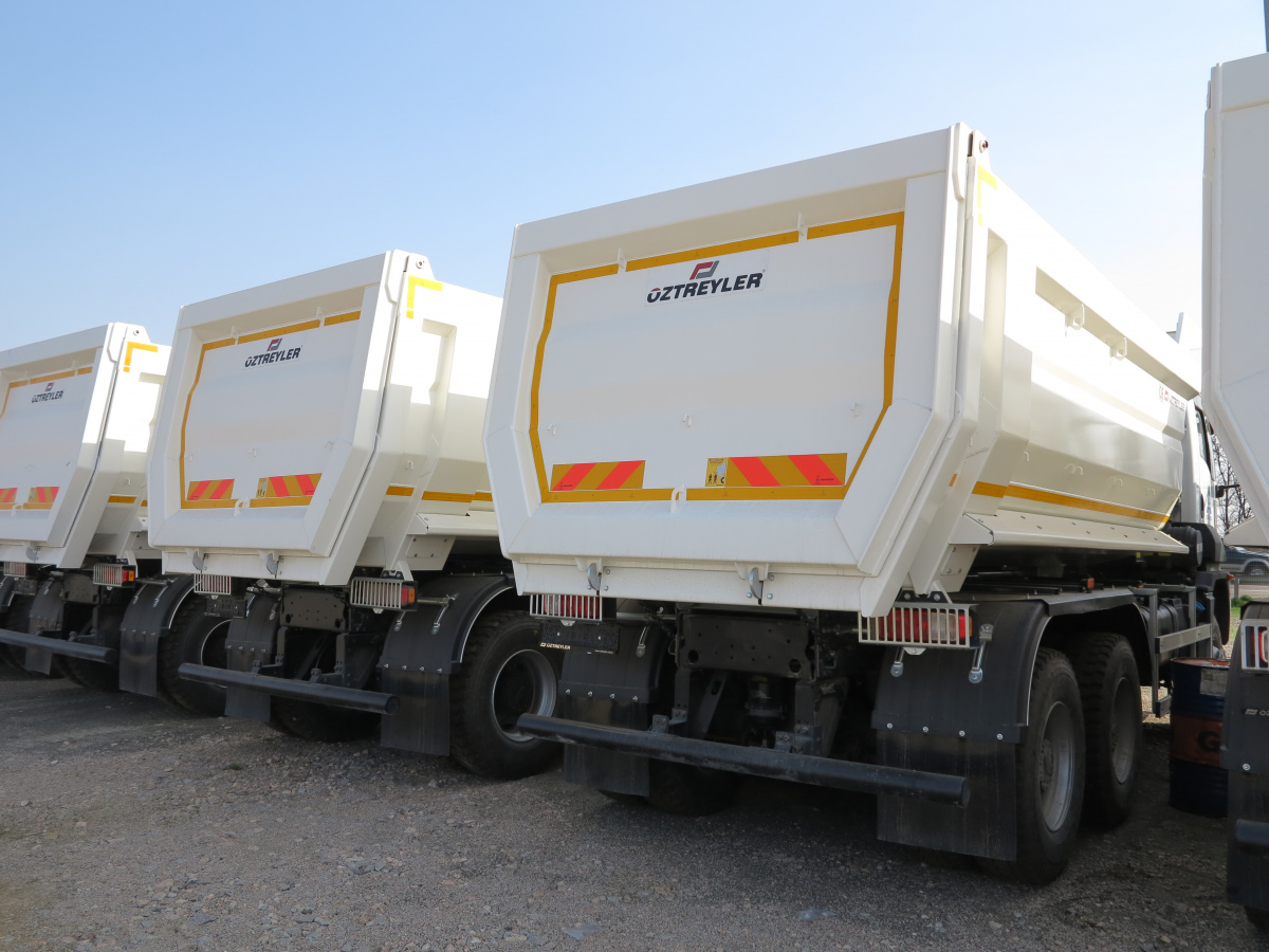 Всего мы поставим 122 автомобиля, из которых 35 седельных тягачей, 35 трехосных самосвалов – с объемом кузова 16 м куб, сталь Hardox, грузоподъемностью 20 т. А также 40 четырехосных самосвалов – с объемом кузова 24 м куб., тоже сталь Hardox, грузоподъемностью 26 тонн. Для дорожного строительства самые оптимальные машины. Поставили и автогудронаторы на шасси 6х2 – объемом 14 м куб.