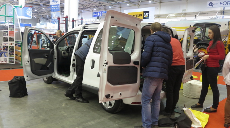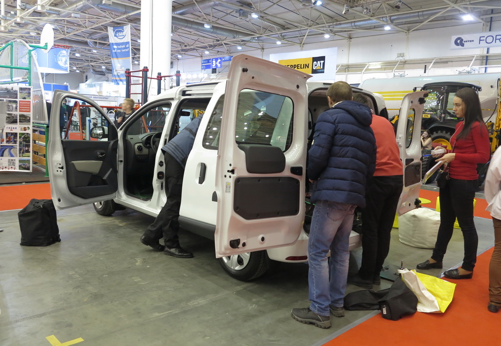 Компанія «Рено Україна» приїхала на виставку зі своїм практичним універсалом Renault Dokker. Багатофункціональна 5-місцева машина пропонується з 1,6-літровим бензиновим двигуном (84 к.с.) або 90-сильним дизелем 1,9 dCi. Об‘єм багажника становить 800 л, однак при складанні задніх сидінь він збільшується до 3000 л, а корисна довжина – до 1570 мм. Ціна на автомобіль стартує від 348 тис. грн.