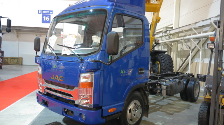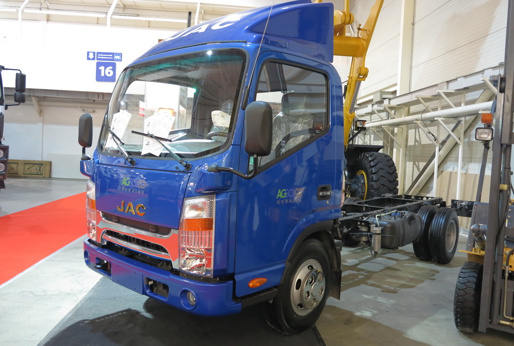 Компанія «АГСОЛКО Україна» представила на виставці малотоннажну китайську вантажівку JAC N56. Шасі розраховане на повну масу 5600 кг і корисне навантаження 3450 кг. Машина укомплектована 2,7-літровим дизельним двигуном потужністю 156 к.с. і максимальним крутильним моментом у 355 Нм при 1800 – 2600 об/хв. Коробка передач – механічна, 6-ступінчаста. Об‘єм бака – 100 л. На шасі можна встановити бортові платформи або кузови-фургони завдовжки 4 м і завширшки 2,5 м.