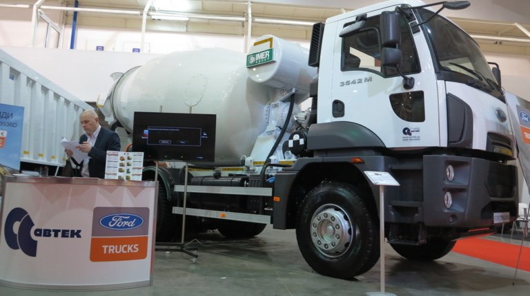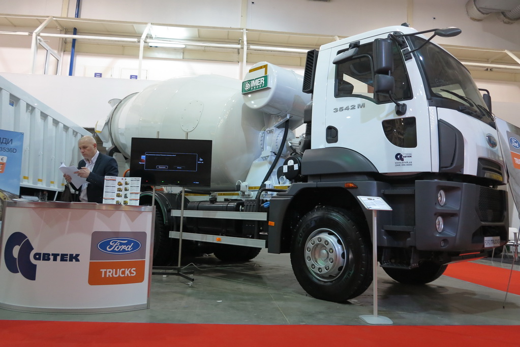 У приміщенні, на стенді демонструється більш потужна, чотиривісна машина 4142D – вантажопідйомністю 25 т і 12-літровим двигуном Ecotorq в 420 к.с. Поруч експонується автобетонозмішувач з 9-кубовим барабаном на шасі Ford Trucks 3542M, з двигуном в 420 к.с.