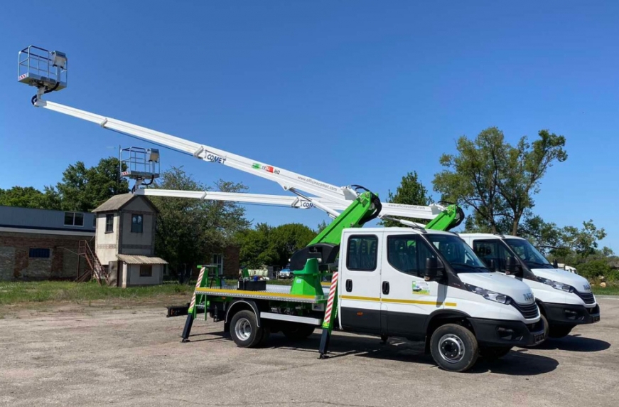 Вибір замовника був зроблений на користь найпопулярнішої в Україні автовишки – Comet 19-12-14 HQ, що збирається на Заводі спецтехніки «Техкомплект». Як шасі використано популярну розвізну модель IVECO Daily c дворядною, 7-місною кабіною.