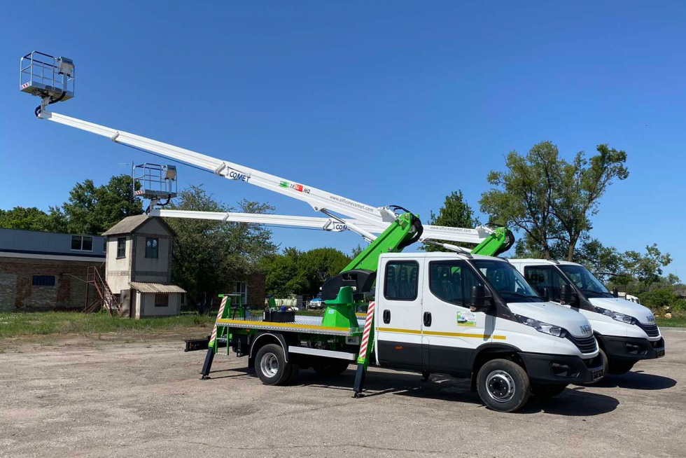Вибір замовника був зроблений на користь найпопулярнішої в Україні автовишки – Comet 19-12-14 HQ, що збирається на Заводі спецтехніки «Техкомплект». Як шасі використано популярну розвізну модель IVECO Daily c дворядною, 7-місною кабіною.