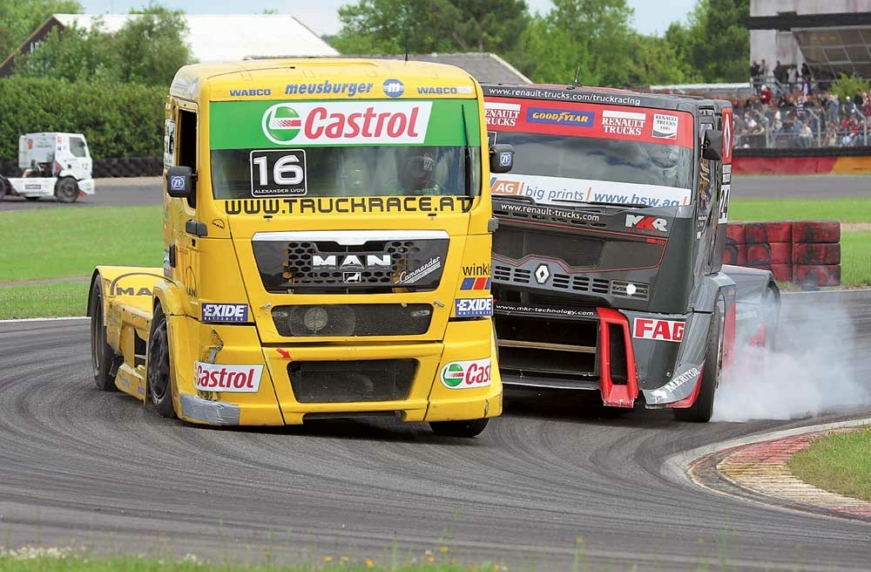 Не успел тракрейсинговый люд свыкнуться со столь необычным календарем, как организаторы опубликовали новый техрегламент. Главными изменениями стали отказ от наварных покрышек в силу их недолговечности в пользу полноценных гоночных, отмена запрета на полную блокировку дифференциала плюс вето на двигатели с двойным турбонаддувом. Хотя такие моторы за счет более быстрого наполнения цилиндров раcкручиваются лучше, в миру подобная схема встречается редко – коммерческая техника должна быть экономичной и надежной. И ни MAN, ни Mercedes, ни Volvo с Renault подобные силовые агрегаты не строят. Поэтому все они исправно проигрывали чешской конюшне Buggyra, выступающей на реннтраках собственной постройки.