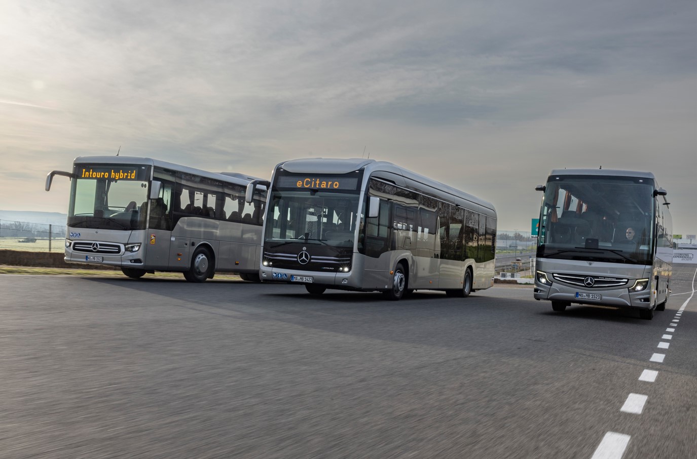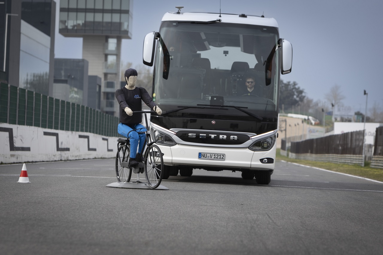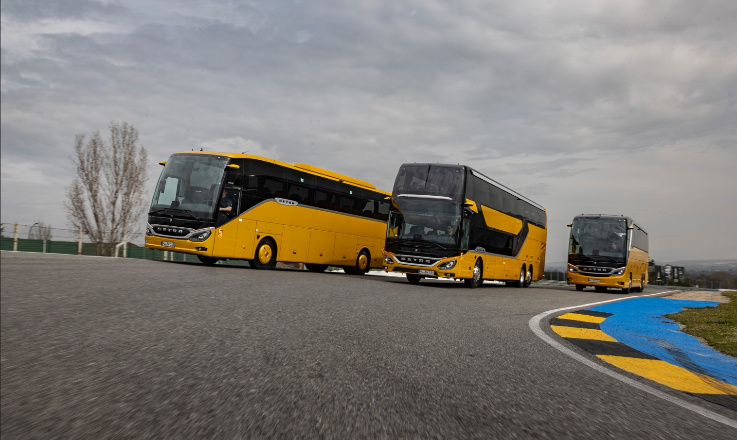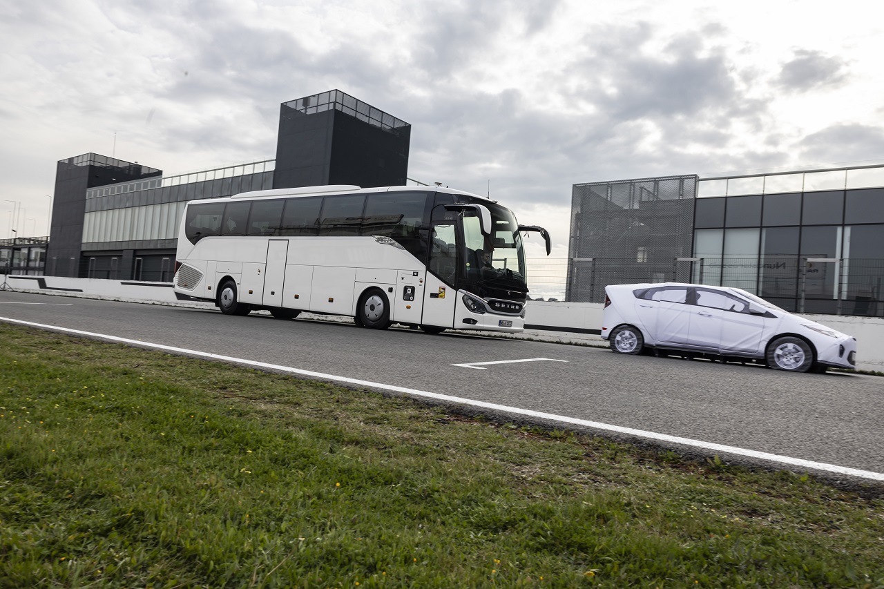 Нові автобуси Daimler Buses – марок Mercedes-Benz та Setra не тільки задовольняють усім цим вимогам, але й пропонують розширені функції безпеки. А переконатись у цьому можна на гоночній трасі Circuito del Jarama неподалік Мадрида, де для водіїв організовані спеціальні тренувальні поїздки. Вони розбиті на чотири секції з використанням 14 автобусів різних моделей.